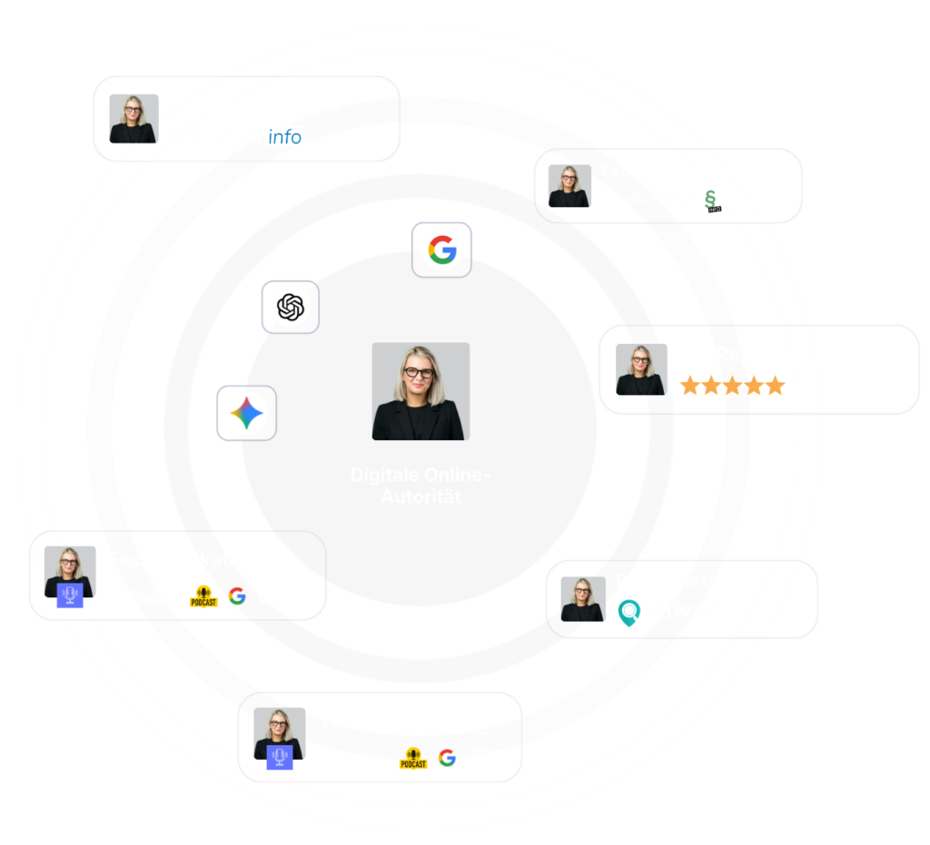Google & KI müssen Ihr Fachgebiet klar erkennen und als relevant einstufen, damit Sie bei passenden Anfragen angezeigt werden. Dafür ist eine Online-Präsenz im juristischen Kontext entscheidend