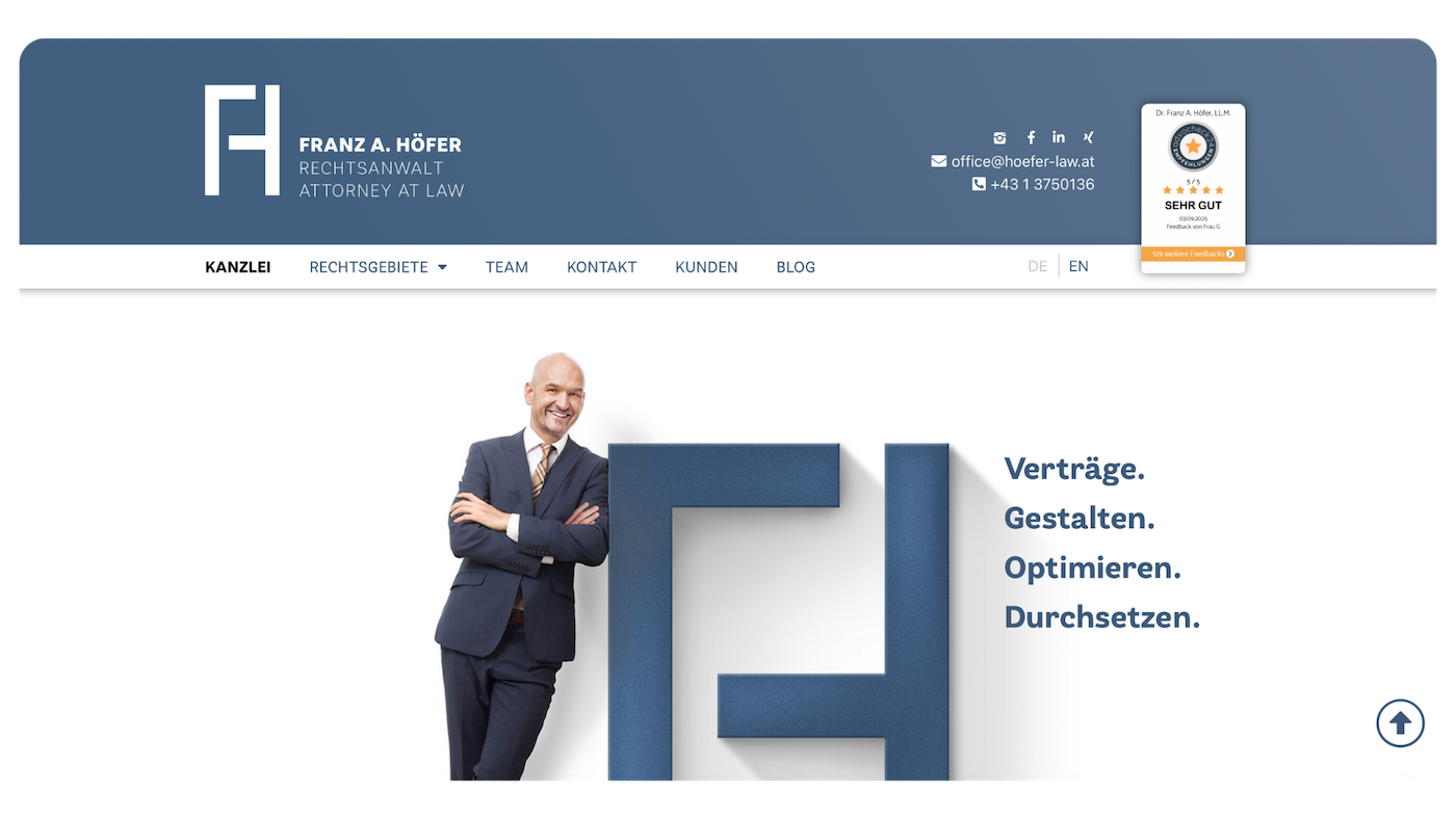 Leistungen, Rechtstipps, Fachtexte und klare Botschaften, die Ihre Kompetenz zeigen – und von Google & KI als Expertenwissen gewertet werden.
